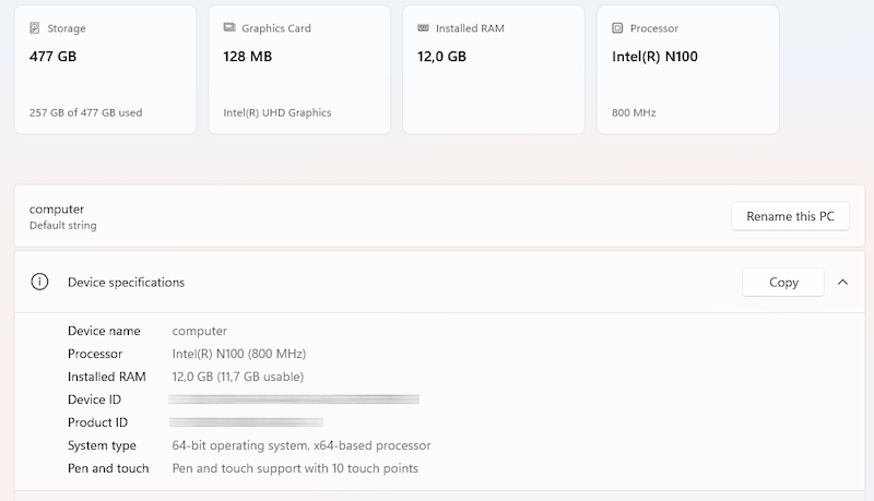 - Intel N100