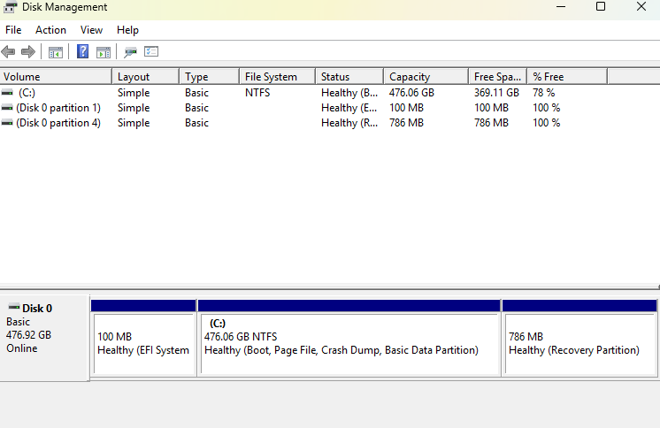 First I checked the disk layout in Windows