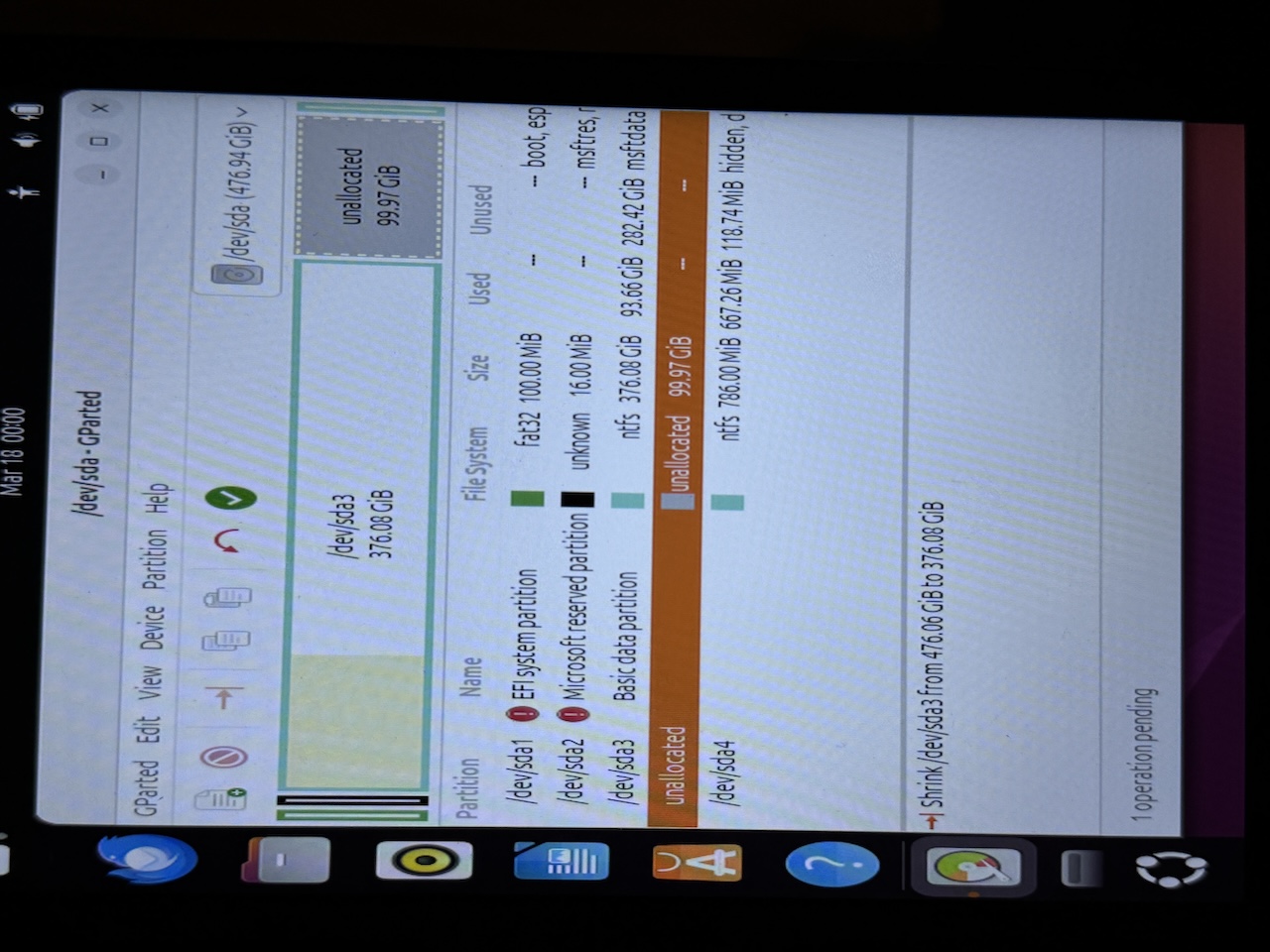 But once GParted opened, resizing the NTFS partition was easy.