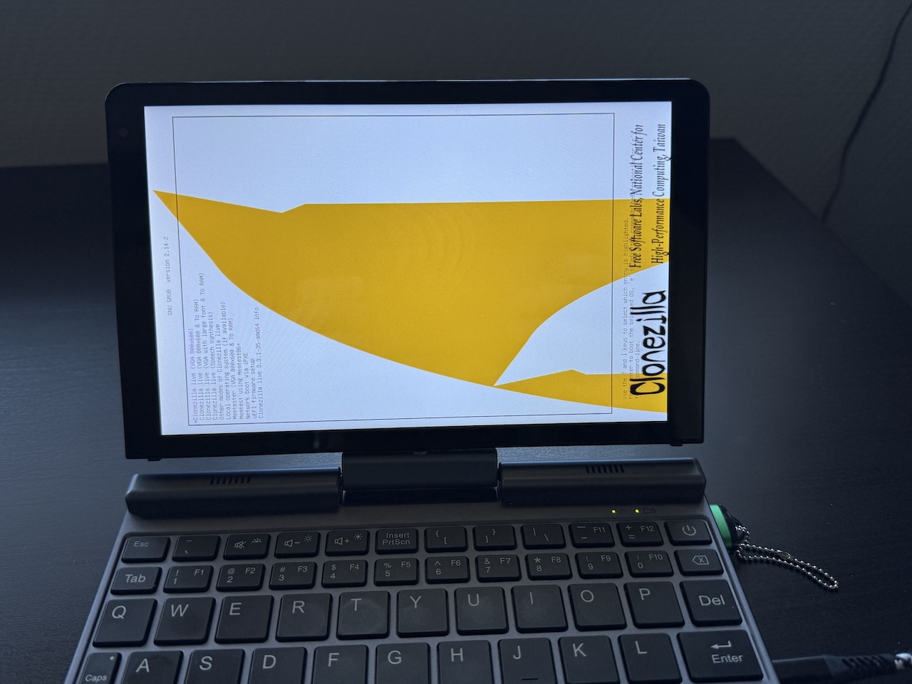 One thing I immediately noticed on this machine: the BIOS and Clonezilla both displayed in vertical orientation. Windows itself did not. That looked a bit alarming at first, but apparently some of these small devices handle screen orientation in a funny way at firmware and early boot level.