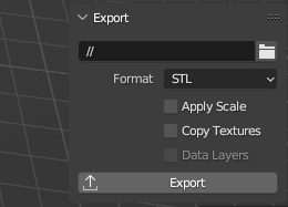 Finally, make sure your model is selected. In the Export section, save your model. By clicking on the folder icon, you can specify the location where the STL file will be saved.