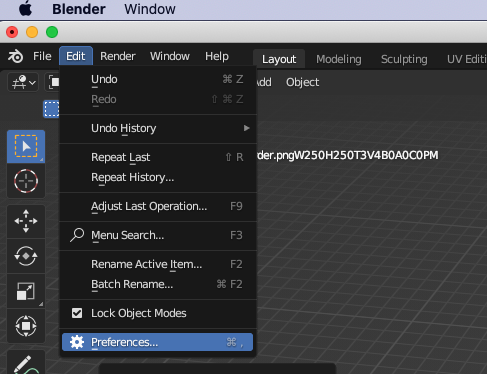 Now, we will install a plugin that will allow us to perform some 3D printing actions on our model. First, go to Blender Preferences in the Edit menu.