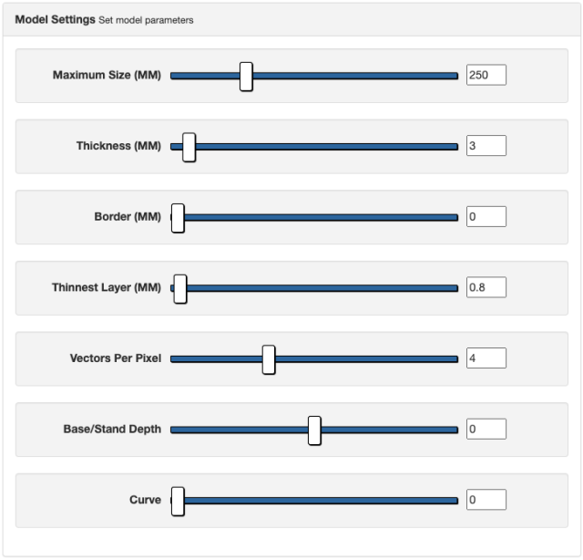And change the maximum size (in mm) of your lithophane. I measured my lamp, and the size that could fit on it was 250x250 mm. These dimensions would also fit on the printing bed of my 3D printer. I left the rest of the settings as default, but feel free to change them to your liking.