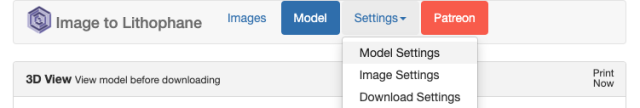 Here, I have changed the slider to the 'Mirror Image On' position. This will create a mirrored image of the lithophane. I have also opted to print a negative image because I wanted to invert the white letters to be shown darker and the black background to be lighter, allowing more light to come through the lithophane. However, if you have a different picture, you might prefer a positive image instead.