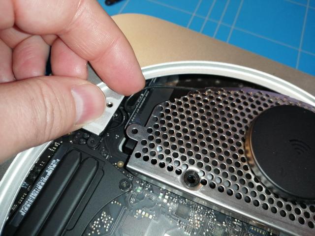 Then remove 4 screws that hold the metallic mesh shield and tilt it up.