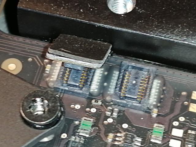 Reattach the connector to the new hard disk and reapply the black tape to hold it in place.