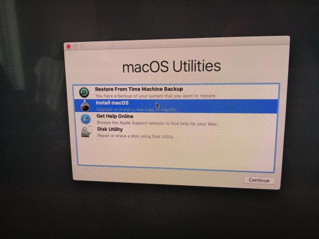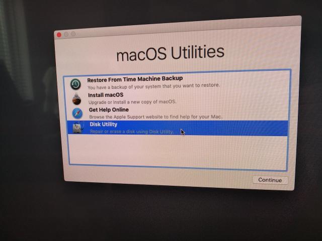 Insert the USB stick holding macOS Mojave and turn it on. After a while the macOS Utilities should pop up.