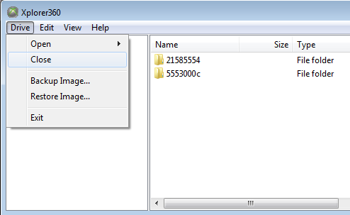 Inside Xplorer360 application select Drive -> Open -> Harddrive or Memcard...