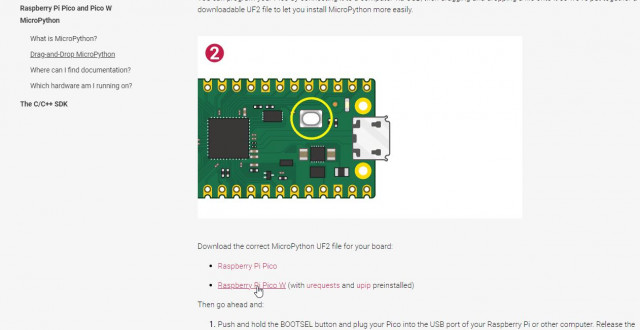 Go to the Raspberry Pi website and download the latest version of Micropython for Pico W.