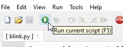Click on the Run icon and the LED on your Raspberry Pi Pico W should start blinking.