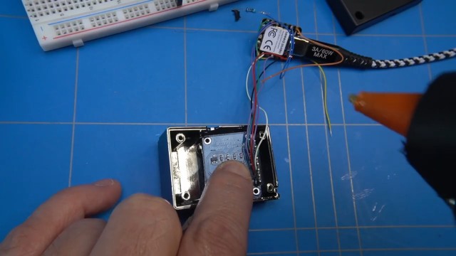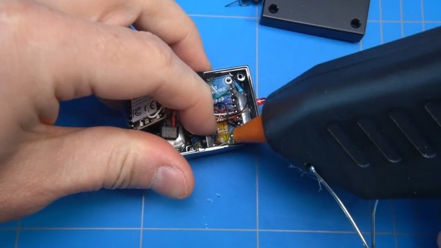 To have a sense that something is already finished, let's fasten the LCD screen to the enclosure with some hot glue.