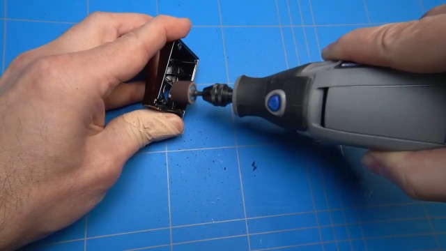 I have here a small LCD screen that I was thinking of using where the reels could be displayed. The screen should fit, but there are some edges inside the enclosure that are blocking it. We'll get to that part later and remove them using a Dremel tool.