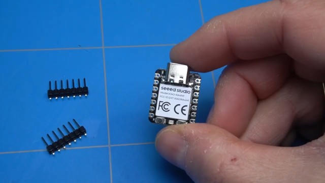 I will start with soldering the pin headers of the XIAO module, then the placement of the LCD screen and this button. I will also insert the buzzer and the LED. We'll come to that later.