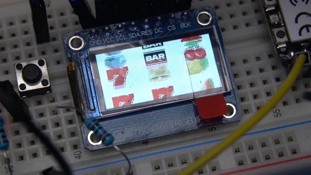 if (!offset3) tft.fillRect(xPosReel3, yPosReel3 - 40 + offset3 + 30, imageWidth, 10, ST77XX_WHITE);And this is how it looks on the display.